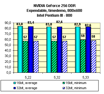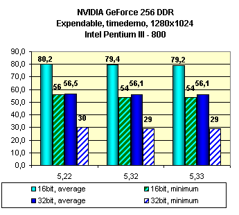 Как можно видеть, смена версий драйверов у этой карты ничего не дает. Поэтому можно выбирать любую нравящуюся версию. Чисто из соображений надежности могу посоветовать пользоваться версией 5.22, так как это официально вышедшая версия.