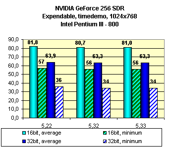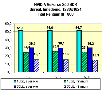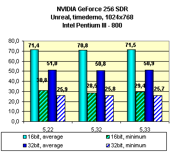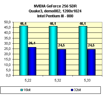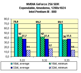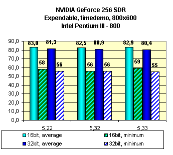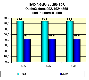 Как можно видеть, смена версий драйверов у этой карты ничего не дает. Поэтому можно выбирать любую нравящуюся версию. Чисто из соображений надежности могу посоветовать пользоваться версией 5.22, так как это официально вышедшая версия.