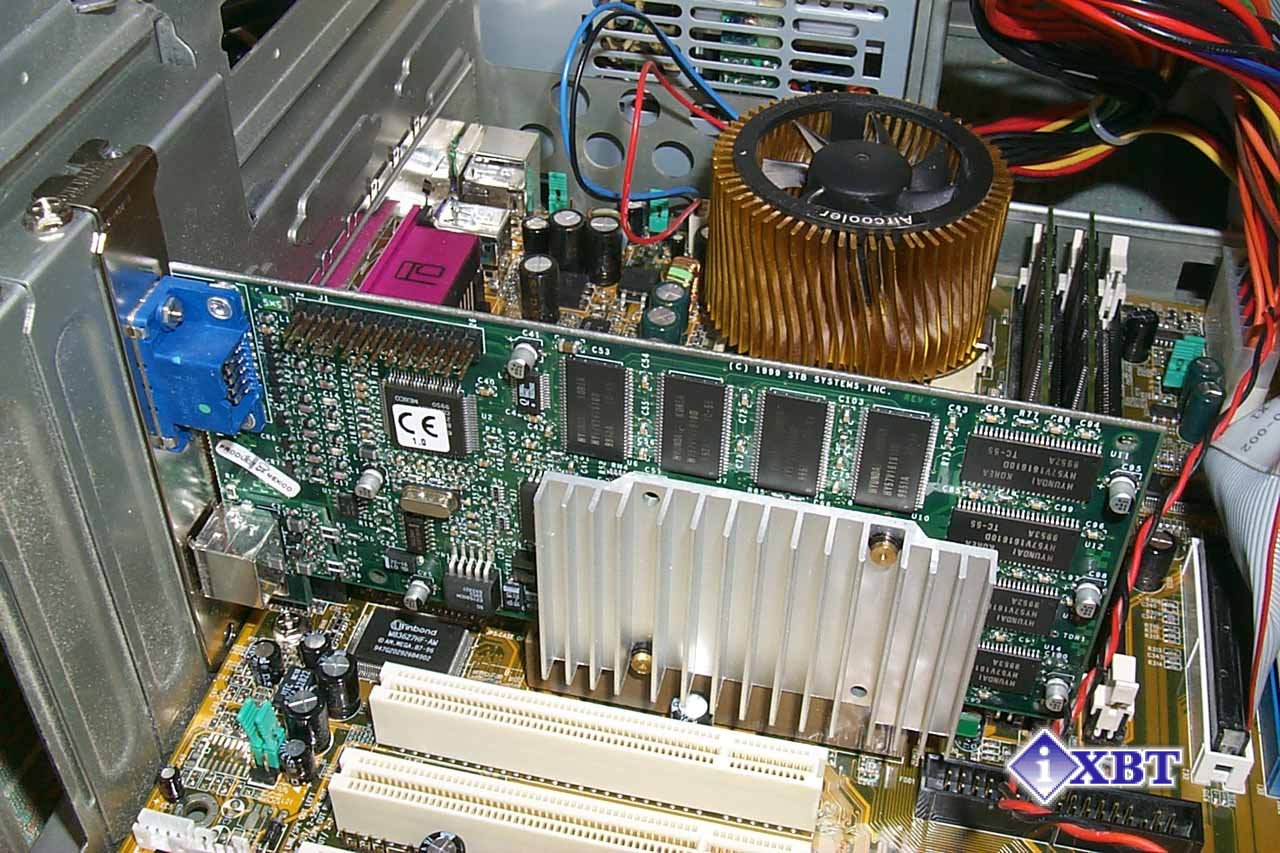 - память — 16MB SDRAM в 8-ми микросхемах Hyundai 5,5 ns, частота работы понижена до 143 МГц, 128-битная шина обмена с чипом;
