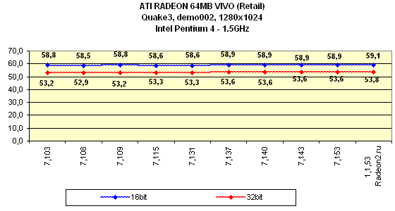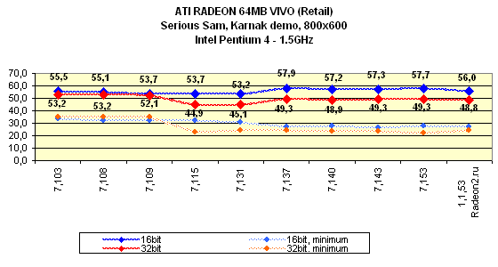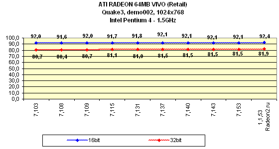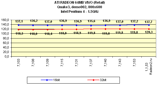 Я особо отмечу, что на всех версиях драйверов, начиная с 7.115, тестирование проводилось при активированной S3TC, поэтому результаты в Quake3 на этих версиях выше, однако надо сказать, что на этих же версиях компрессия текстур почему-то отказалась работать на платформе i815 (Pentium III). То есть, Quake3 просто игнорировал эту функцию при испытаниях.