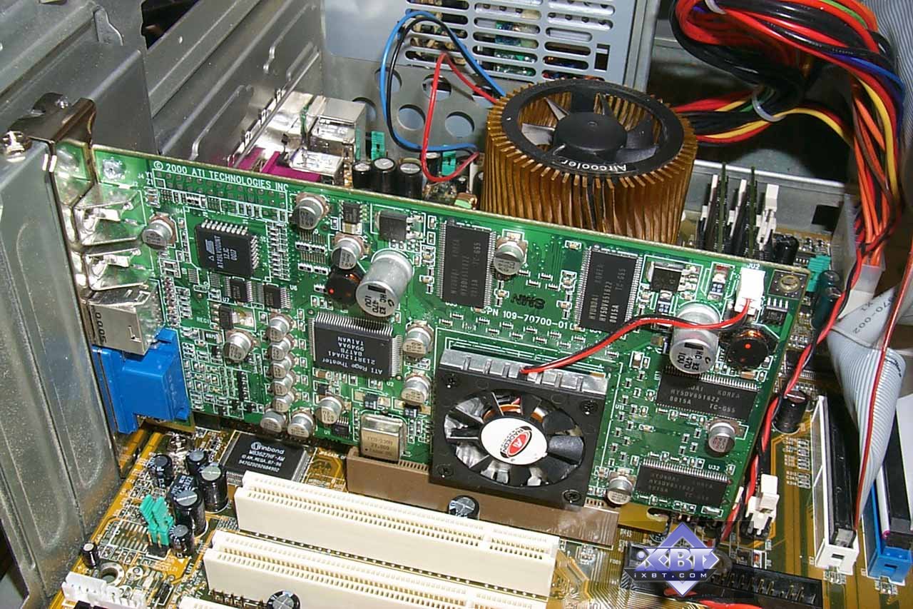 После сильно запоздалого выхода на рынок ATI RAGE 128 PRO и уже сравнительно невысокой его конкурентоспособности фирма ATI летом 2000 года выпускает весьма примечательный продукт, очень ударивший по тогдашнему фавориту NVIDIA GeForce2 GTS, — RADEON. В дальнейшем образовалась целая линейка карт на этом чипе, занимающая многие ценовые ниши на рынке. Видеокарты внутри этого семейства отличаются подчас только частотой работы GPU и памяти. В данном случае мы рассматриваем самый высокопроизводительный акселератор, имеющий частоту работы чипа и памяти 183 МГц. Если сравнить с аналогами от NVIDIA, то ближайший и реальный конкурент — NVIDIA GeForce2 GTS. Снижение цен на карты от ATI очень усилило их позиции на рынке, и поэтому многие пользователи предпочитают приобретать подобные видеокарты.