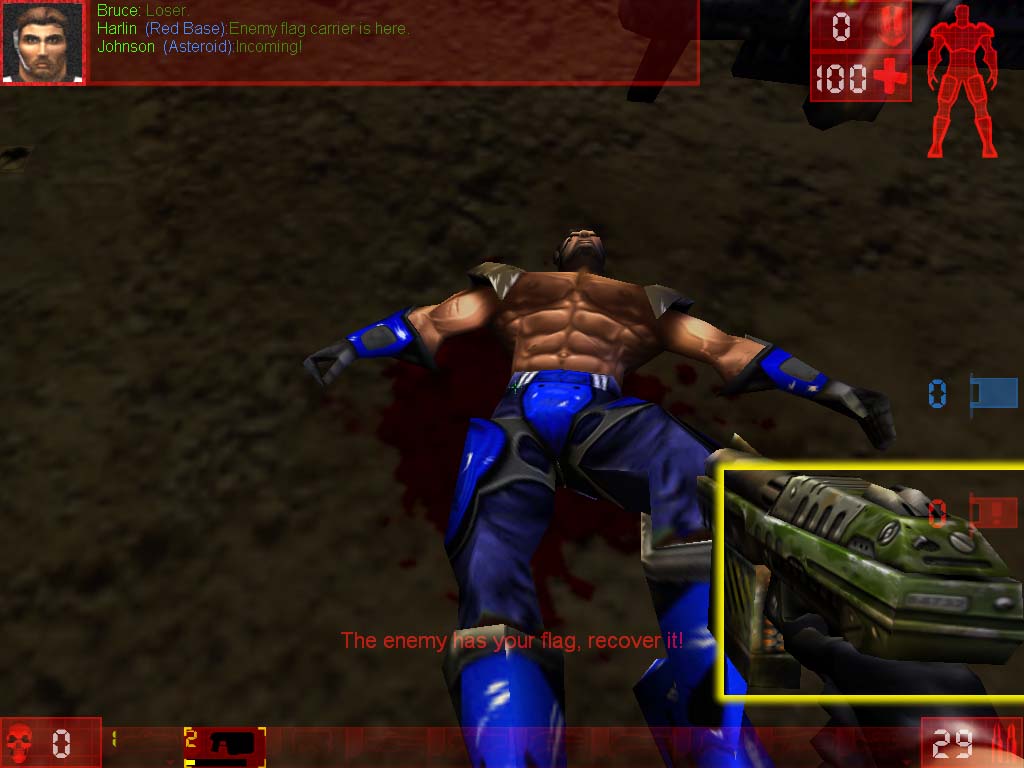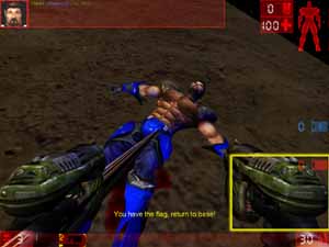 Результат, как говорится, налицо. Вот только в третьем примере распухшее оружие выглядит весьма комично :-). Как я уже сказал, что эта технология, реализованная через CPU, даже на Athlon 1200 MHz делает подчас мало играбельными сцены, на которых находится 4-5 игроков.