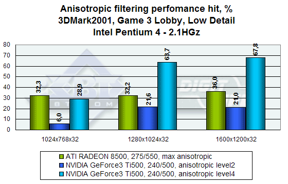 Анизотропия от ATI (речь идет о RADEON 8500) гораздо более дешевая и, как считалось до недавнего времени,