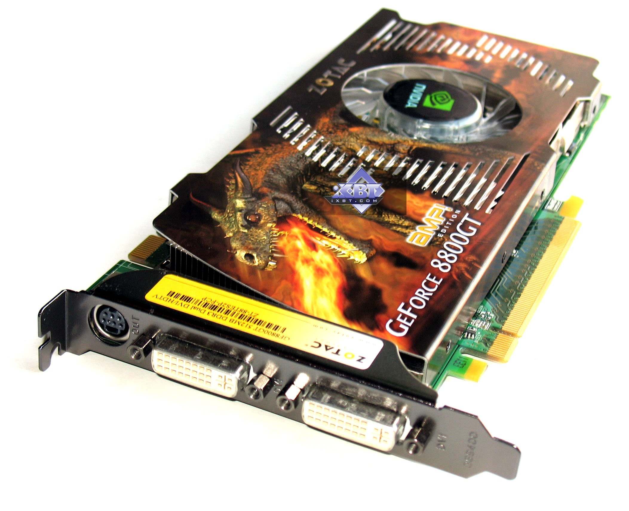 Этот чип представляет Zotac GeForce 8800 GT AMP edition PCI-E 512MB DDR3 (700/2000 MHz), PCI-E.