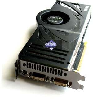 Это самый быстрый на сегодня ОДНОПРОЦЕССОРНЫЙ ускоритель, однако это уже уходящий с рынка продукт (снят с производства), поддерживает все современные технологии, включая шейдеры DX10. Карта имеет интерфейс PCI-Express 16x, 768 МБ памяти GDDR3 SDRAM, размещенной в 12-ти микросхемах на лицевой сторонe PCB.