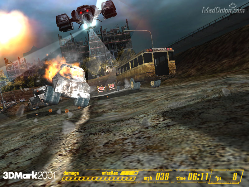 Есть и проблемы с качеством. Например, в 3DMark2001 (Game2) можно наблюдать такую картину: