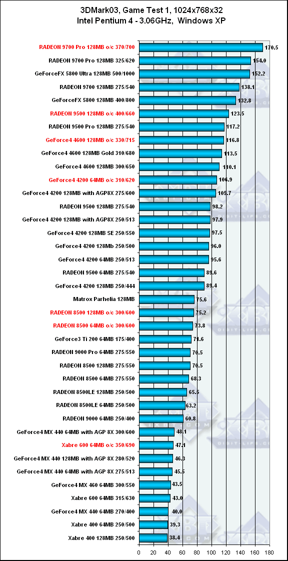 3DGiТоги, февраль 2003 года: 3DMark03, Game Test 1, 1024x768, Pentium4, Windows XP