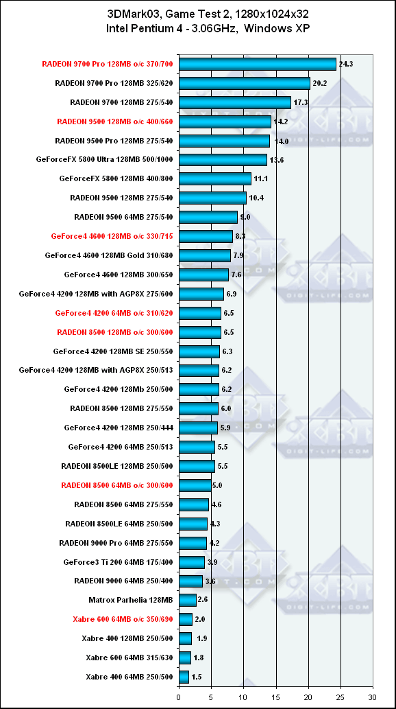 3DGiТоги, февраль 2003 года: 3DMark03, Game Test 2, 1280x1024, Pentium4, Windows XP