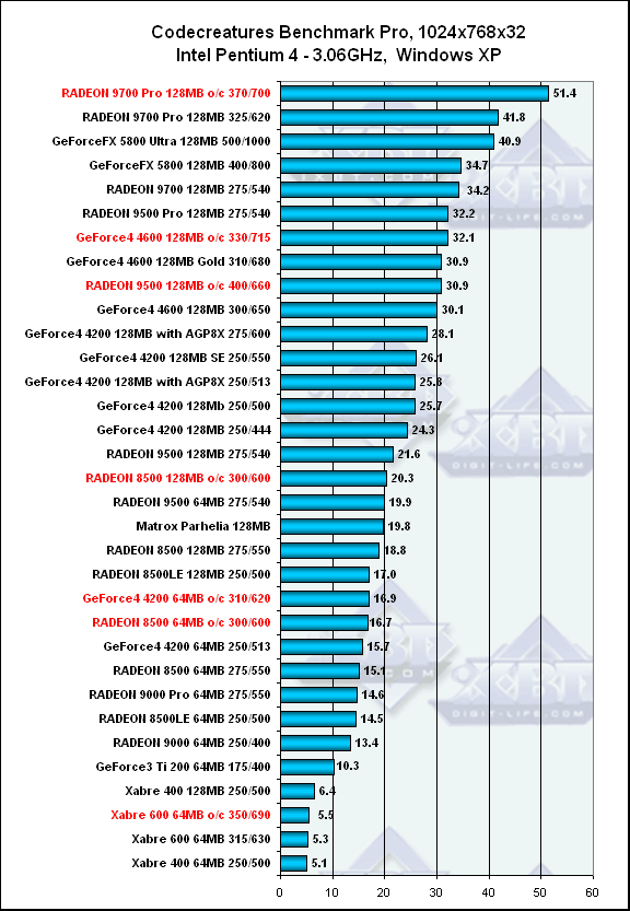 3DGiТоги, февраль 2003 года: Codecreatures Benchmark Pro, Pentium 4, 1024x768, Windows XP