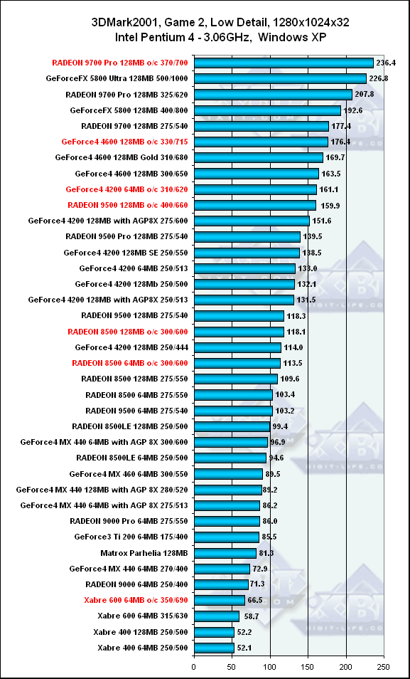 3DGiТоги, февраль 2003 года: 3DMark2001, Game 2 — Low details, Pentium 4, 1280x1024, Windows XP