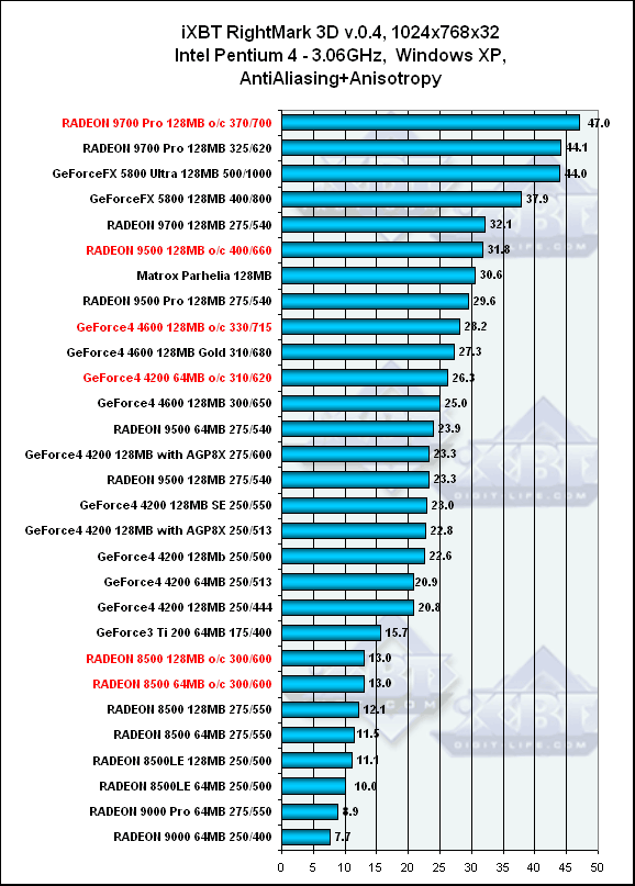 3DGiТоги, февраль 2003 года: iXBT RightMark Video Analyzer, Pentium 4, 1024x768, AntiAliasing+Anisotropy, Windows XP