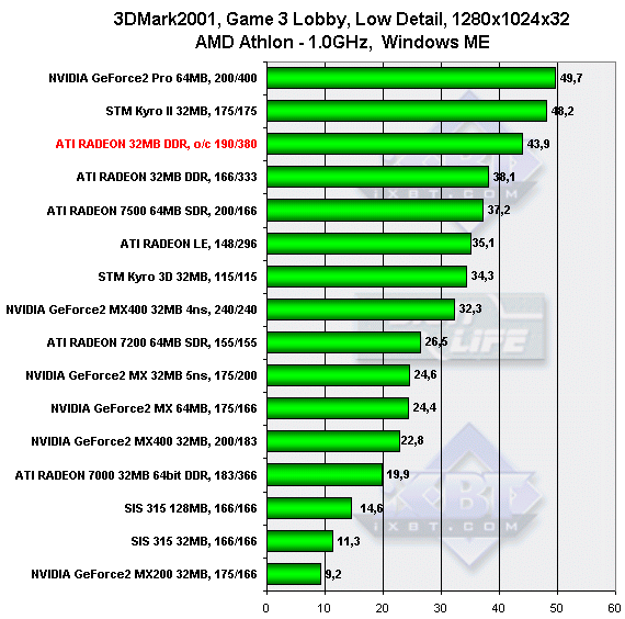 3DGiТоги марта 2002 года: 3DMark2001, Game3 — Low details, Athlon, 1280x1024, Windows ME