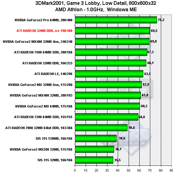 3DGiТоги марта 2002 года: 3DMark2001, Game3 — Low details, Athlon, 800x600, Windows ME