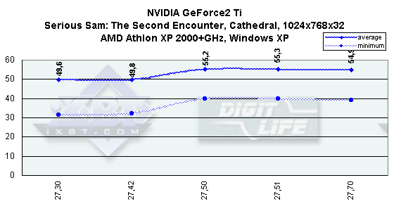 - чип NVIDIA GeForce2 Ti, частота работы 250 МГц;
