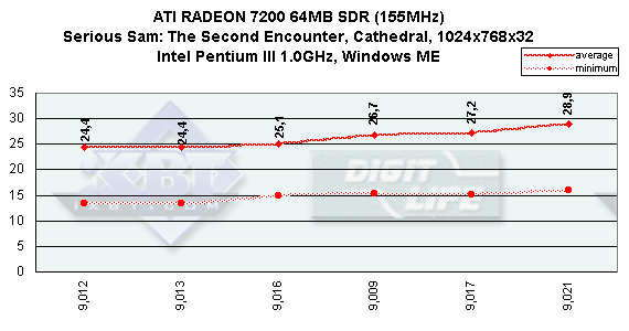 Мы видим, что версия 9.021 почти во всех случаях оказалась лучшей по производительности, а вот под Windows XP картина неоднозначная. Также хочу заметить, что у ряда версий есть проблема с выставлением нужных частот дискретизации (refresh rate).