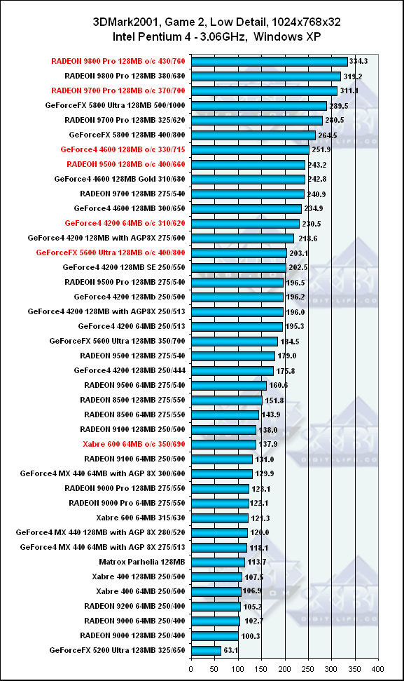 3DGiТоги, март 2003 года: 3DMark2001, Game 2 — Low details, Pentium 4, 1024x768, Windows XP