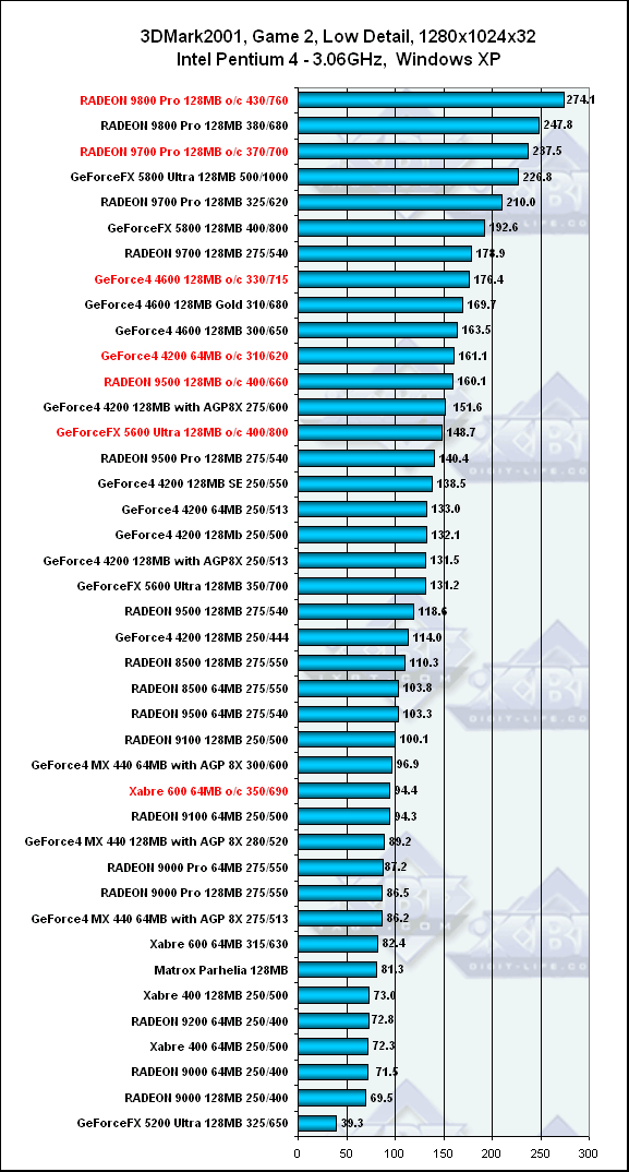3DGiТоги, март 2003 года: 3DMark2001, Game 2 — Low details, Pentium 4, 1280x1024, Windows XP