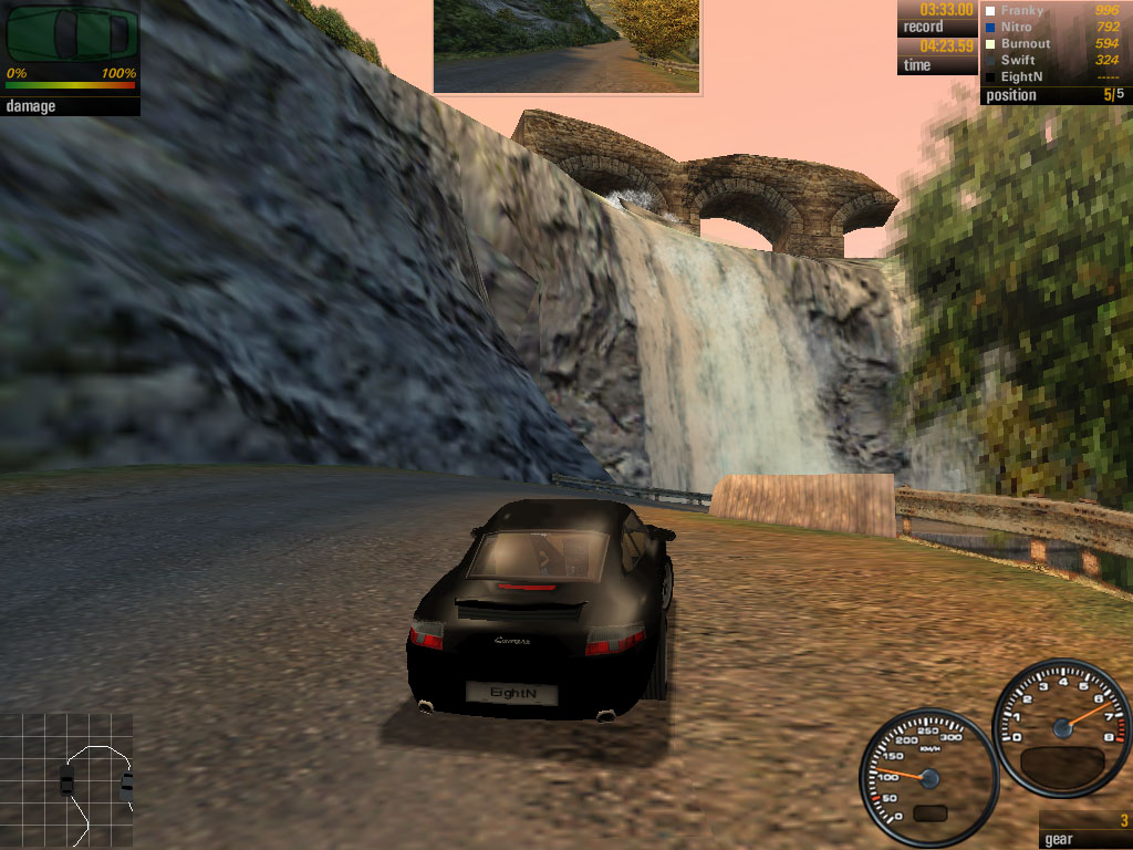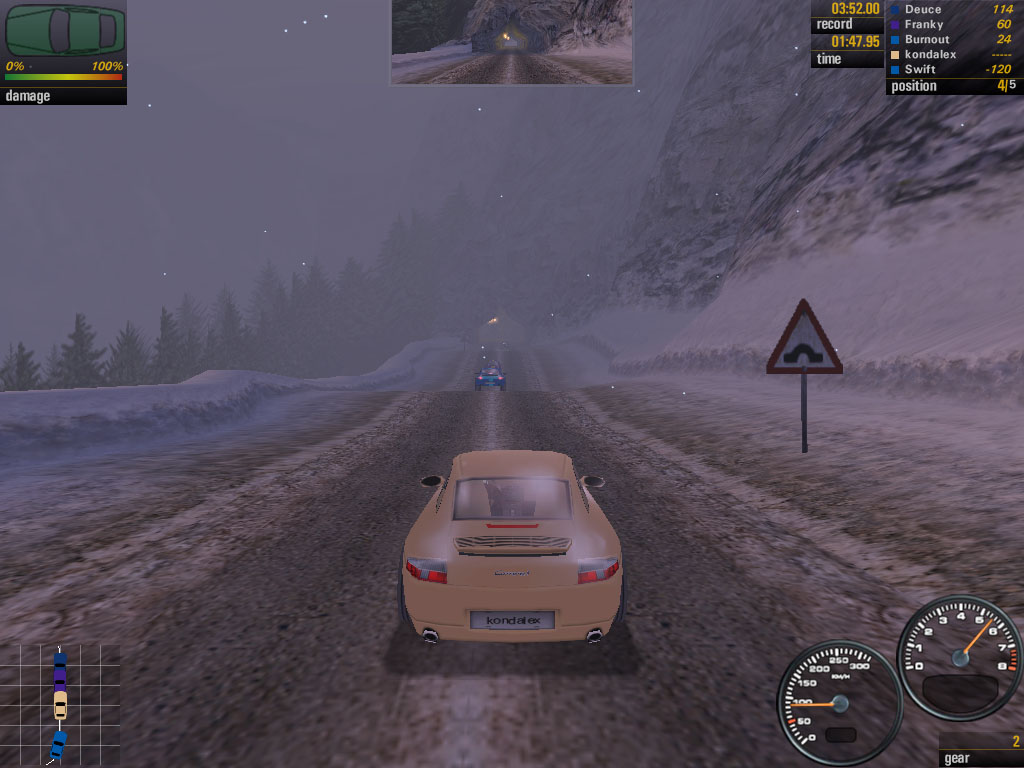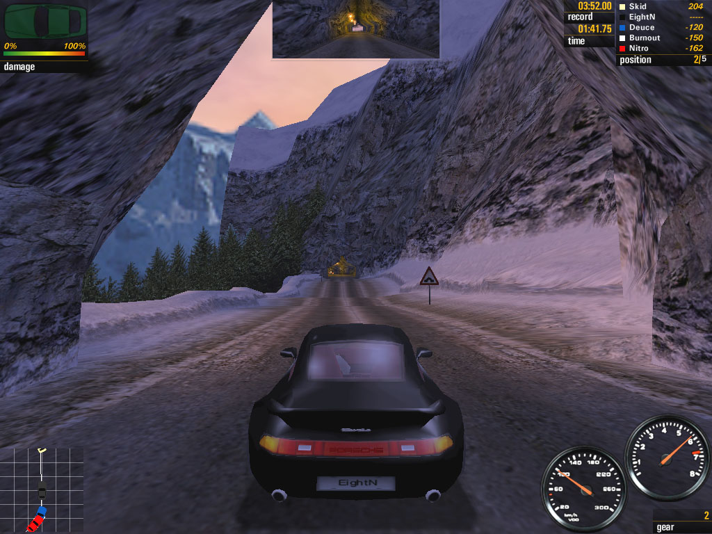 В игре Need For Speed V (Porshe 2000) в 16-битном цвете на всех видеокартах, кроме STMicroelectronics KYRO/KYRO II, дым у автомобилей — зеленого цвета, поэтому я не могу данный артефакт отнести к недостаткам видеокарт, скорее это глюк самой игры:
