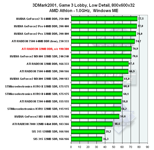 3DGiТоги апреля 2002 года: 3DMark2001, Game3 — Low details, Athlon, 800x600, Windows ME