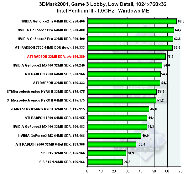 3DGiТоги апреля 2002 года: 3DMark2001,Game3 - Low details, Pentium III, 1024x768, Windows ME