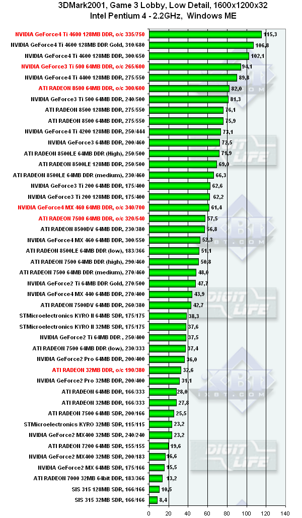 3DGiТоги апреля 2002 года: 3DMark2001,Game3 - Low details, Pentium 4, 1600x1200, Windows ME