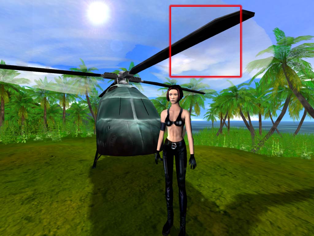 Надо отметить, что GeForce3 поддерживает новые типы анти-алиасинга на основе технологии мультисэмплинга (MSAA), среди которых есть весьма примечательный режим Quincunx (о нем мы подробно писали в нашем обзоре по GeForce3). Вот два примера: