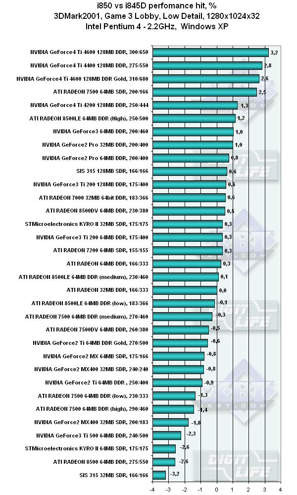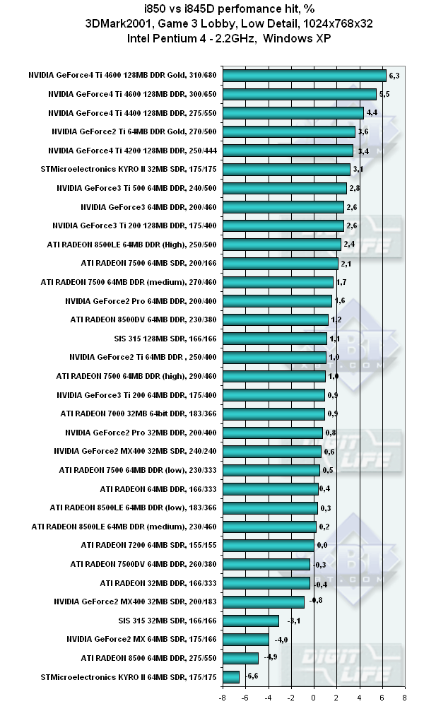 3DGiТоги апреля 2002 года: Сравнение производительности видеокарт на базе платформ i845D и i850