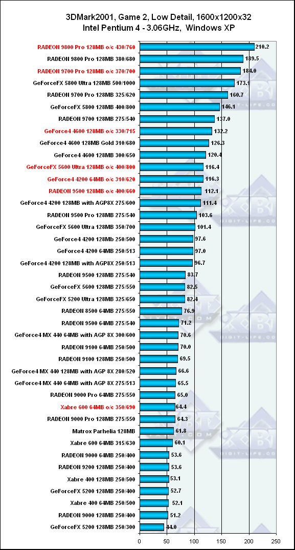 3DGiТоги, апрель 2003 года: 3DMark2001, Game 2 — Low details, Pentium 4, 1600x1200, Windows XP