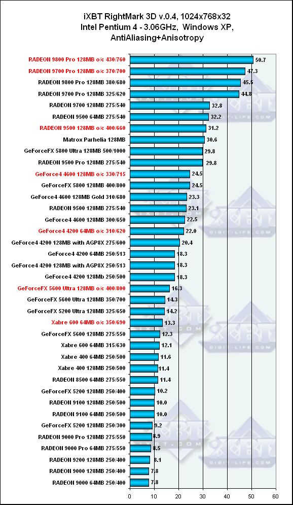 3DGiТоги, апрель 2003 года: iXBT RightMark Video Analyzer, Pentium 4, 1024x768, AntiAliasing+Anisotropy, Windows XP