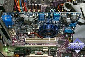 - память — 128MB DDR SGRAM в 8-ми микросхемах Samsung 3.6 ns, частота работы 275 (550) МГц, 128-битная шина обмена с чипсетом;