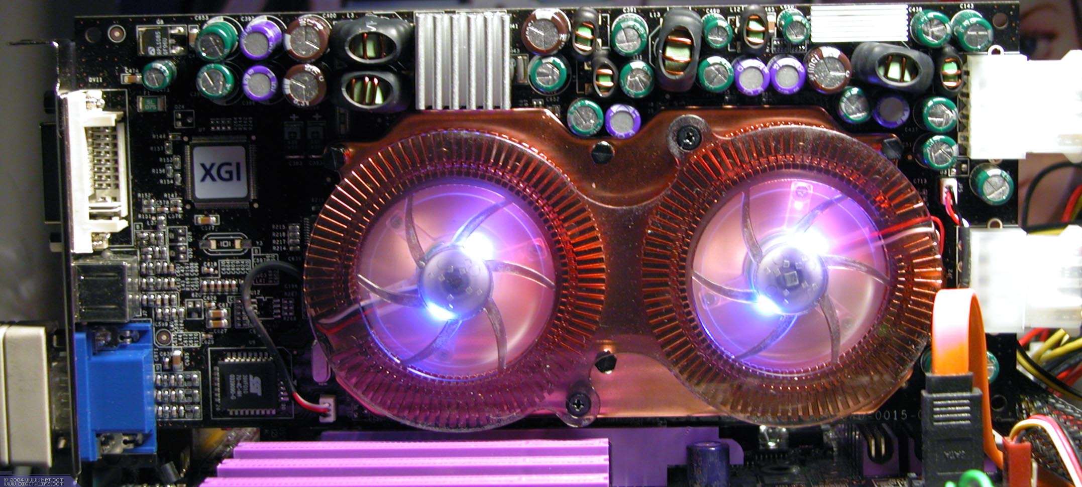 - 2 чипа XGI Volari V8 Ultra, частота работы 330 МГц;