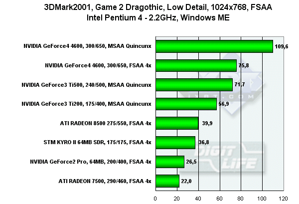 3DGiТоги мая 2002 года: 3DMark2001, Game2 — Low details, Pentium 4, 1024x768, FSAA, Windows ME