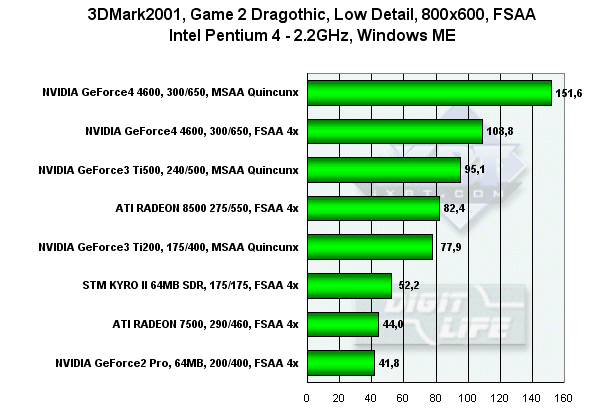 3DGiТоги мая 2002 года: 3DMark2001, Game2 — Low details, Pentium 4, 800x600, FSAA, Windows ME