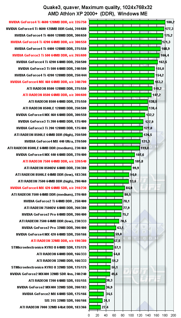 3DGiТоги мая 2002 года: Quake3, quaver — максимальные настройки, AthlonXP, 1024x768, Windows ME
