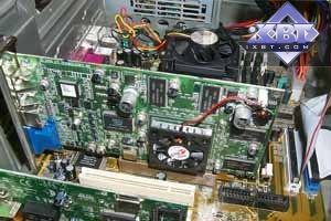 - память — 64MB DDR SDRAM в 8-ми микросхемах Hyundai 5,5 ns, частота работы 166 (333) МГц, 128-битная шина обмена с чипсетом;