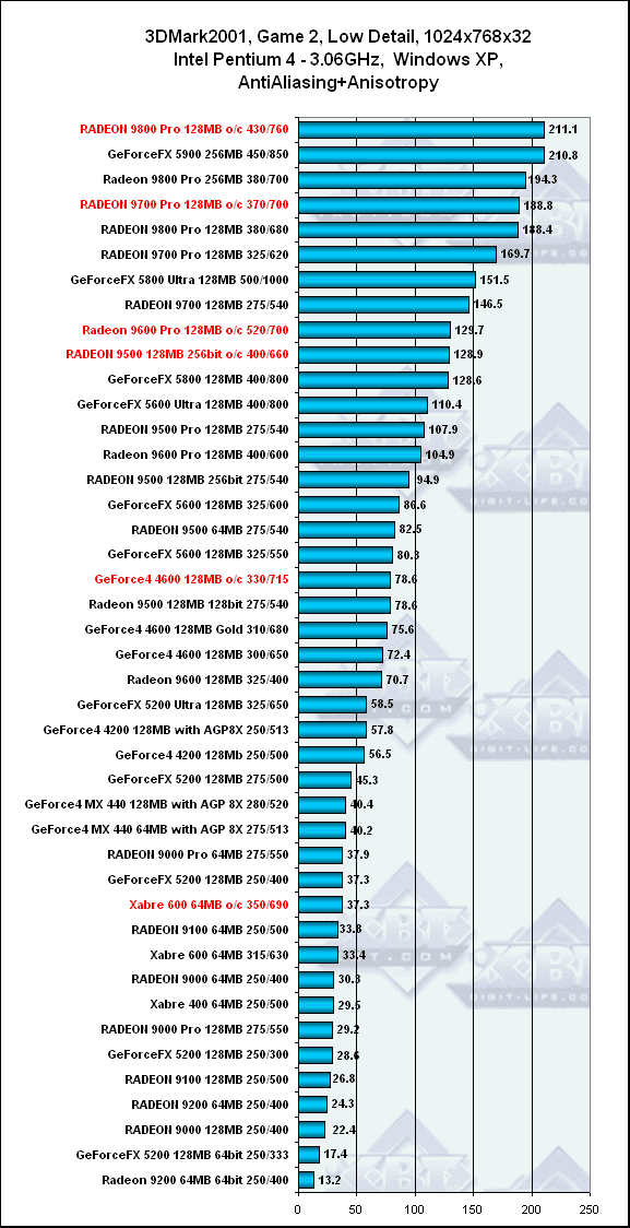 3DGiТоги, май 2003 года: 3DMark2001,Game 2 — Low details, AntiAliasing+Anisotropy, Windows XP