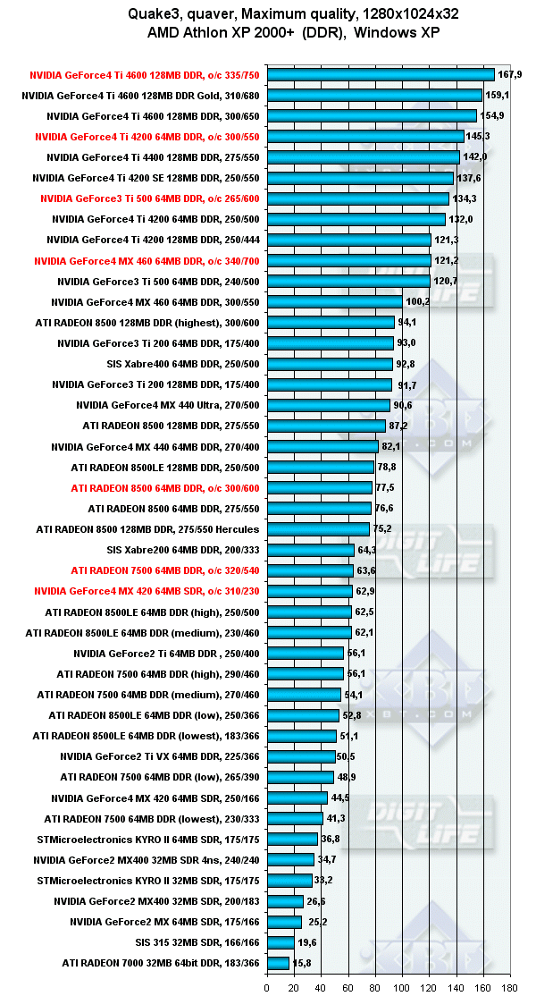 3DGiТоги июня 2002 года: Quake3 - максимальные настройки, Athlon, 1280x1024, Windows XP