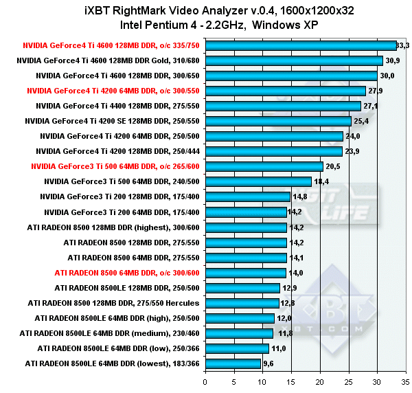 3DGiТоги июня 2002 года: iXBT RightMark Video Analyzer, Pentium 4, 1600x1200, Windows XP