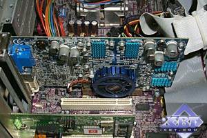 - память — 64MB DDR SDRAM в 8-ми микросхемах Samsung 3.6 ns, частота работы 275 (550) МГц, 128-битная шина обмена с чипсетом;