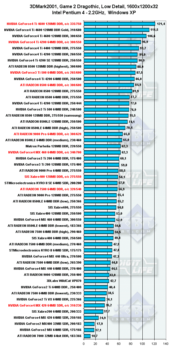 3DGiТоги июля 2002 года: 3DMark2001, Game2 — Low details, Pentium 4, 1600x1200, Windows XP