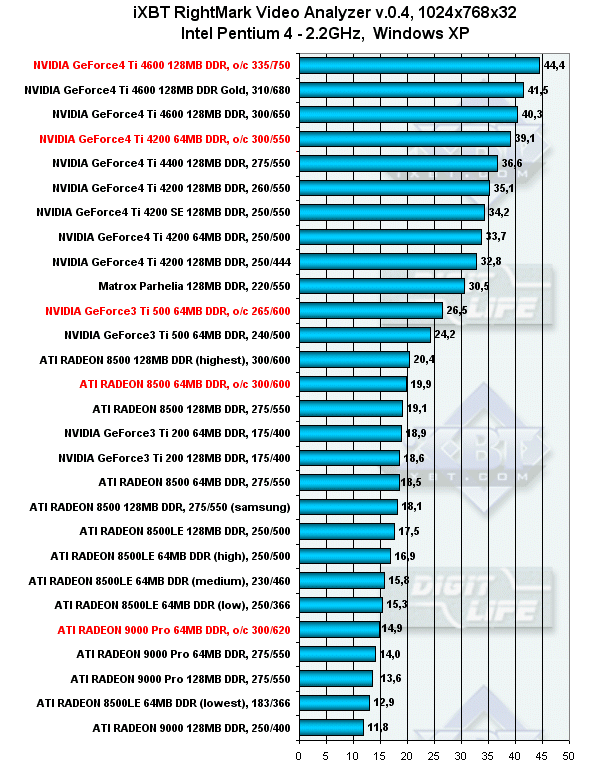 3DGiТоги июля 2002 года: iXBT RightMark Video Analyzer, Pentium 4, 1024x768, Windows XP