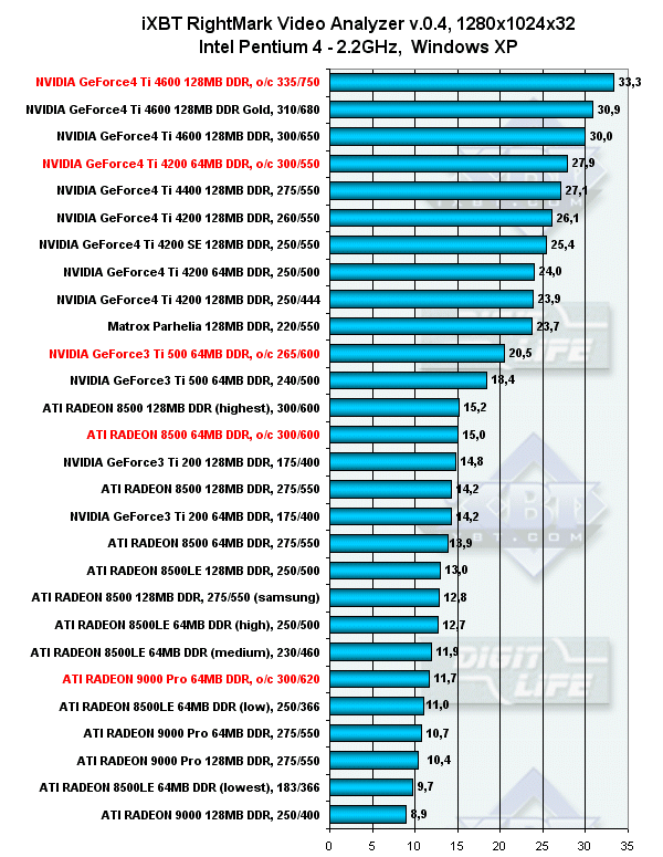 3DGiТоги июля 2002 года: iXBT RightMark Video Analyzer, Pentium 4, 1600x1200, Windows XP