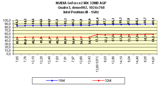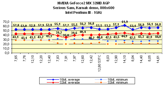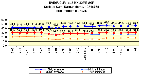 Падение производительности в Serious Sam на предыдущих версиях драйверов вызвано тем, что ранее мы использовали установки, выставляемые игрой по умолчанию в режиме Quality, однако при работе в 32-битном цвете все же не все эффекты имели заданную глубину цвета, поэтому при новом тестировании мы стали принудительно задавать 100-процентное использование соответствующих глубин цвета во всех настройках.