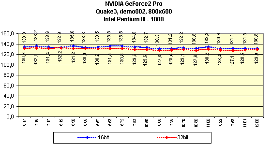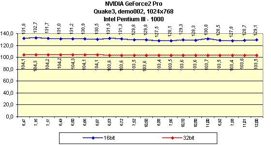 Когда почти год назад появился GPU GeForce2 GTS, снабженный относительно медленной 166-мегагерцовой DDR-памятью, многие обозреватели посчитали, что выпуск таких несбалансированных карт - явление временное, и стали ждать появления карт с установленной на них более быстрой памятью. Однако, это ожидание растянулось на несколько месяцев, и только к осени 2000 года появились первые ласточки подобных карт. Как и следовало ожидать, при той же частоте чипа наличие 200-мегагерцовой DDR-памяти дало очень хороший прирост в производительности. Таким картам присвоен суффикс Pro, они поступили в продажу по значительно более высоким ценам, нежели предыдущие продукты семейства GeForce2. Хотя чип и называется GeForce2 Pro, это, по сути, тот же GeForce2 GTS, потому как работает на тех же 200 МГц. Несмотря на то, что NVIDIA рекомендовала использовать такие GPU в сочетании с 64-мя мегабайтами видеопамяти, в последнее время некоторые производители уже начали выпускать 32-мегабайтные варианты GeForce2 Pro - карт. Эти платы занимают нишу средних по стоимости видеокарт игрового класса, однако в связи с явным замещением GeForce2 GTS более производительным GeForce2 Pro и массовым выпуском последнего, цена карт на последнем интенсивно снижается. Поэтому уже сейчас GeForce2 Pro - карты стали очень популярными (судите сами: совсем недавно за такую же цену можно было купить карту на базе GeForce2 MX400, а стоимость MX400-карт от именитых производителей и до сих пор держится на том же уровне).