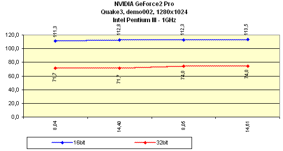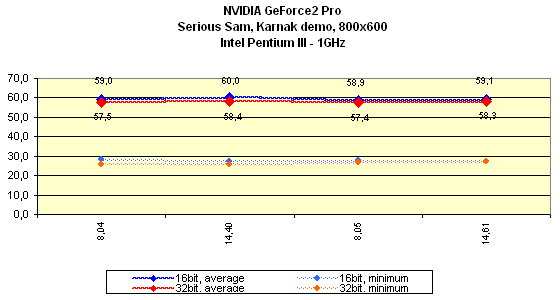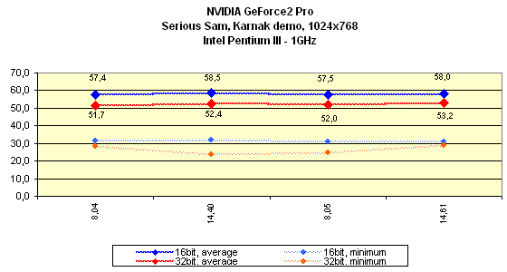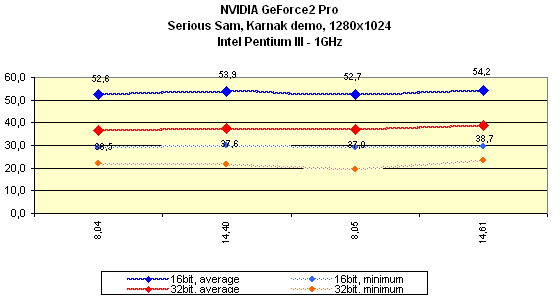 Падение производительности в Serious Sam на предыдущих версиях драйверов вызвано тем, что ранее мы использовали установки, выставляемые игрой по умолчанию в режиме Quality, однако при работе в 32-битном цвете все же не все эффекты имели заданную глубину цвета, поэтому при новом тестировании мы стали принудительно задавать 100-процентное использование соответствующих глубин цвета во всех настройках.