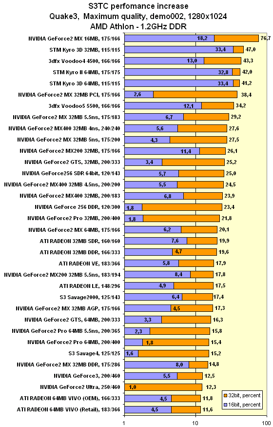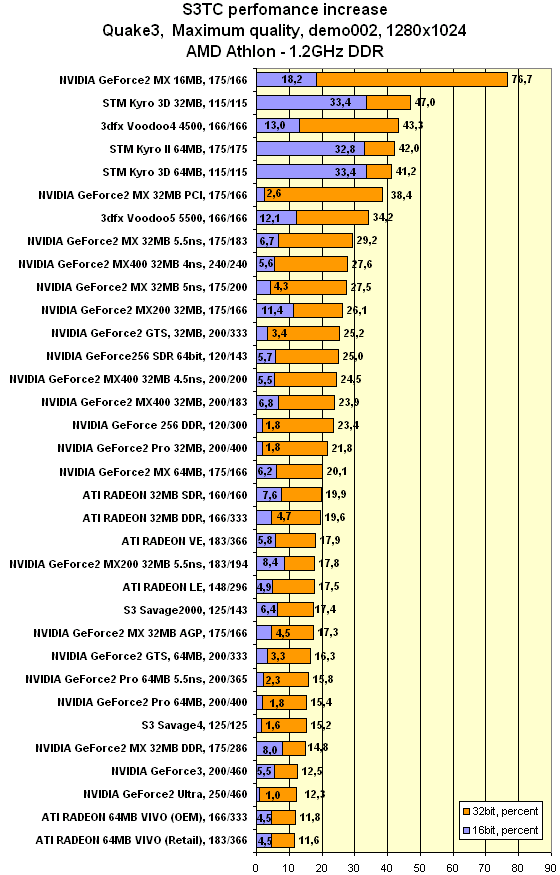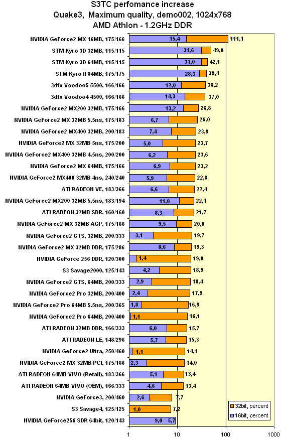 Однако эта коррекция несколько уменьшает прирост производительности при активизации S3TC, что, впрочем, вполне естественно. За улучшение качества почти всегда приходится платить скоростью.
