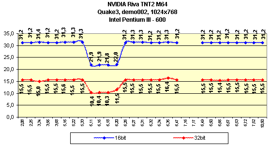 Что касается 2D-качества, то у данной карты оно мало удовлетворительное. Уже в 1280х1024 работать просто невозможно из-за сильного "замыливания" картинки, в 1024х768 и ниже качество весьма приличное, однако повторю свой тезис, что многое в качестве 2D зависит и от конкретной модели монитора.
