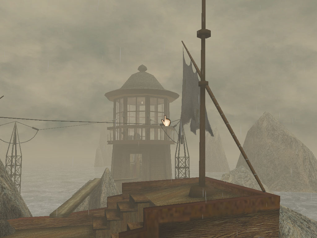 В игре Real MYST можно видеть очень неприятное явление в виде муара, мерцания текстур, "песочка" по склонам скал: