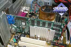 - память - 16MB SDRAM в 8-ми микросхемах Hyundai 5,5 ns, частота работы понижена до 143 МГц, 128-битная шина обмена с чипом;