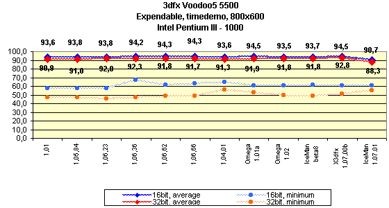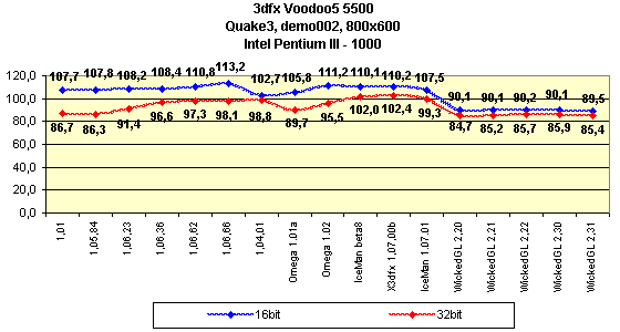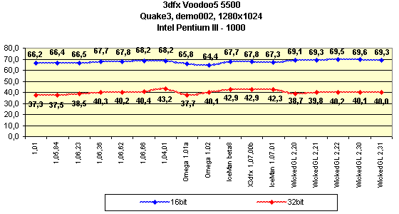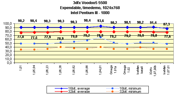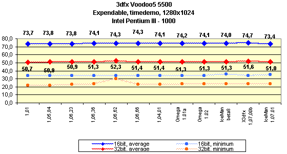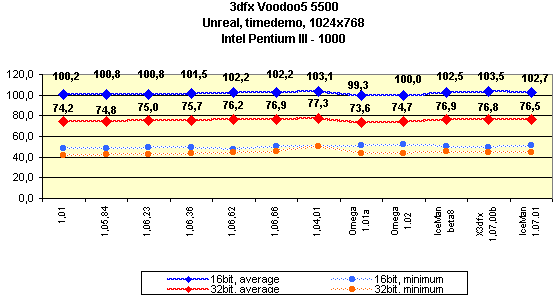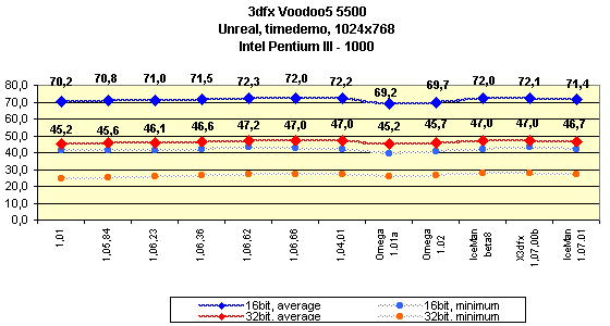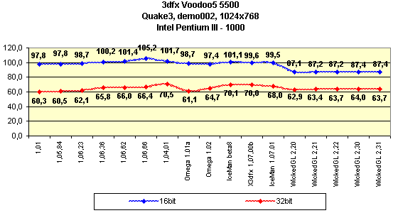 Что касается версии драйверов от x-3dfx, то они оказались весьма хорошими и подчас даже более производительными, чем 1.07.00 от 3dfx, поэтому их мы и использовали для расчета коэффициентов полезности. Производительность при включенном FSAA можно увидеть в сводных диаграммах.